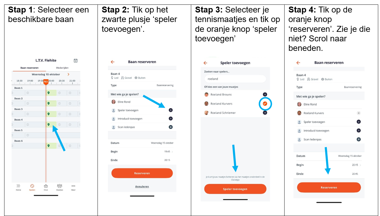 Stap 2: Voltooi de reservering als je tennisgroepje compleet is