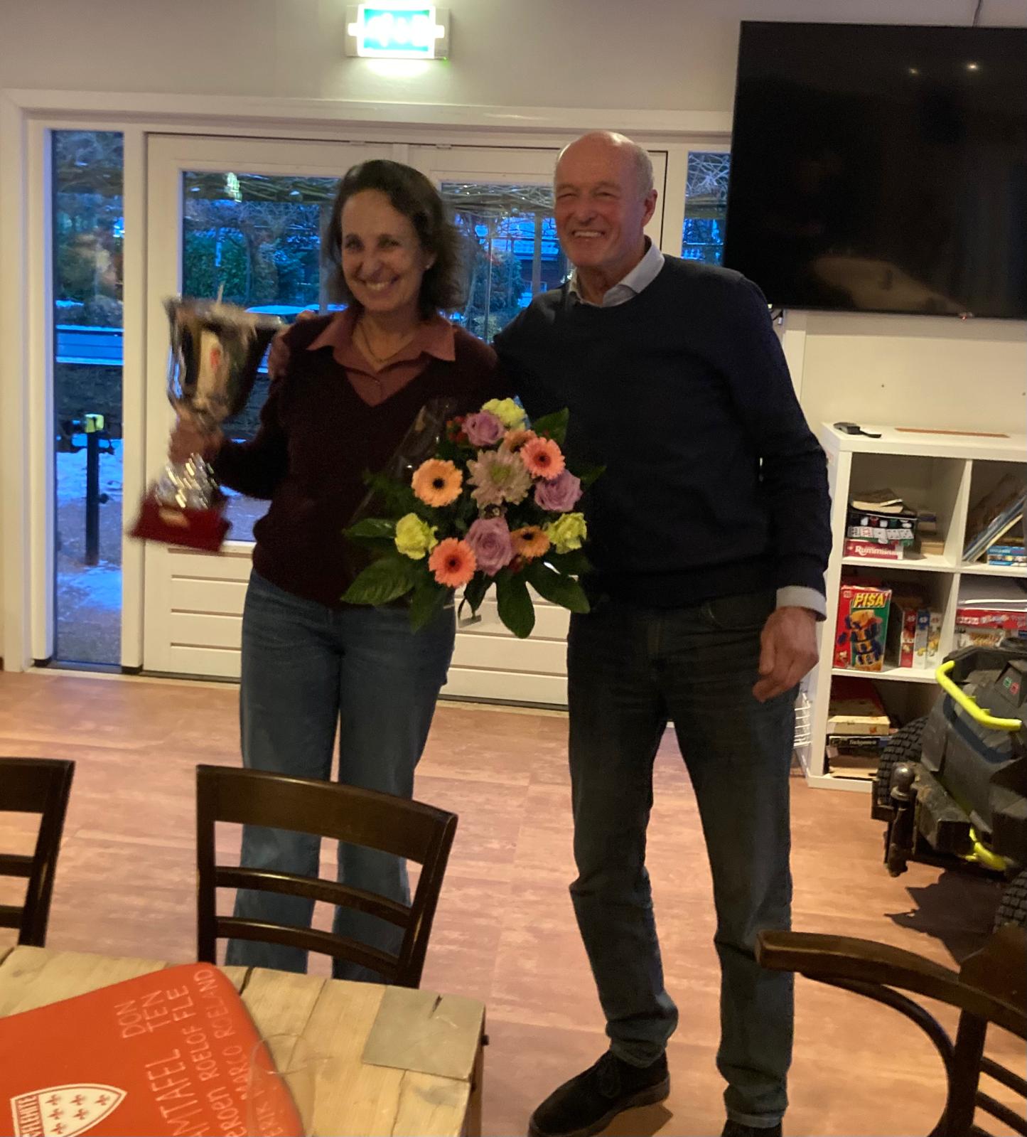 Maar voordat we vooruitkijken, nog één keer terug naar het oude jaar. Want vandaag houden we ook een prachtige traditie in ere: het uitreiken van de prijs voor Vrijwilliger van het Jaar. En met ontzettend veel trots, en graag met een groot en luid applaus van jullie allemaal, gaat de Jazzen Trofee 2026 naar Lisette Hetzler voor haar jarenlange betrokkenheid bij Flehite en haar fantastische inzet voor de Jeugdcommissie. Proficiat Lisette!