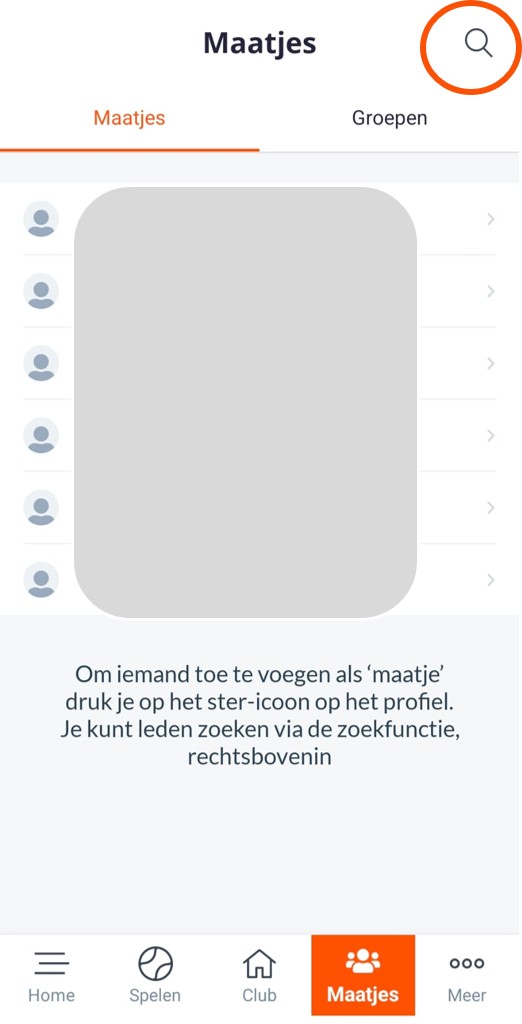 8. Je maatjes kan je vervolgens makkelijk en snel selecteren bij het reserveren van een baan.